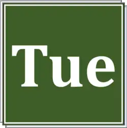 Les autres jours de la semaine sont lundi, mercredi, jeudi, vendredi, samedi et dimanche. Dans la norme ISO, le mardi est codé par le chiffre 2.