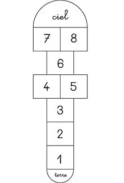 Il faut avoir un parcours ordonné dessiné sur le sol, progressant de « terre » à « ciel ». Après avoir lancé un palet (souvent un caillou plat), les joueurs progressent dans les différentes cases, principalement à cloche-pied, tout en évitant la case où se trouve le palet, ainsi que d'empiéter sur les lignes du tracé. Le gagnant est celui qui le premier termine la totalité des parcours à réaliser.