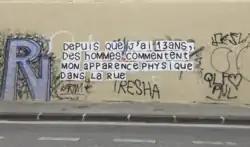 - ↑ « Féminicides : à Paris, des phrases chocs sur les murs pour "interpeller les passants" », sur LExpress.fr, (consulté le )