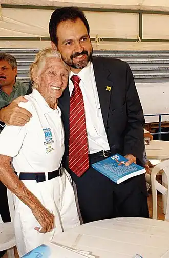 Maria Lenk avec le ministre des Sports brésilien Agnelo Queiroz.