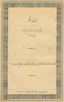 | Bint fikr | Al-Maṭba‘aẗ al-adabiyyaẗ | Beyrouth | 1893 | |
