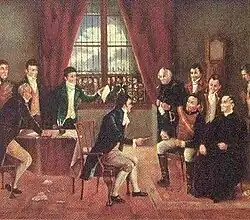 - ↑ Le ayuntamiento est le pouvoir local des criollo (créoles américano-espagnols), qui s'oppose à l'Audiencia, la chambre haute, qui est dominée par les Espagnols provenant de la péninsule.