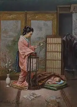 - ↑ Société des amis des arts de Seine-et-Oise, Description des ouvrages de peinture, sculpture, architecture, gravure, miniatures, dessins et pastels exposés dans les salles du Musée de Versailles, du mardi 3 juillet au 30 septembre 1894, (lire en ligne).