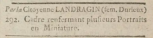 - 1 2 « Citoy[enne] Landragin (femme Durieux) [sic] [Salon de 1795] », notice d'exposant, sur Salons et expositions de groupes, 1673-1914, Musée d’Orsay / Institut national d’histoire de l’art (consulté le ).
