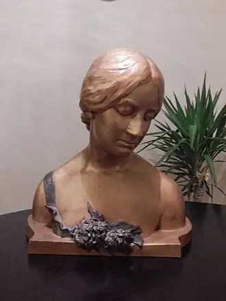 - ↑ Le plâtre symboliste exposé en 1902 donne lieu à une version en marbre en 1905, acquise par l'état et ornant le jardin de la présidence de l'assemblée nationale depuis 1906