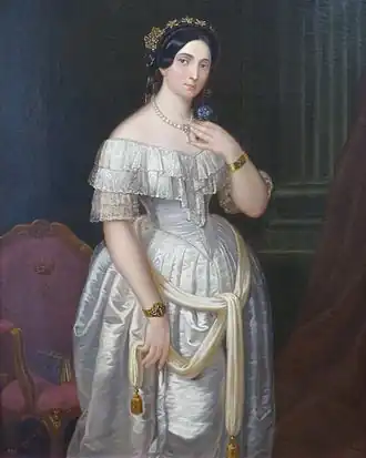 Le , elle épouse sur un coup de tête, pour résister à sa mère le comte Frédéric Joseph de Solms (1815-1863)[4] . En 1850, jeune et coquette, elle rêve de poésie. À Paris, elle tient un salon fréquenté par Victor Hugo, Gérard de Nerval, François Ponsard, Sainte-Beuve, Alexandre Dumas, George Sand et Eugène Sue et qui rivalise avec celui de la Princesse Mathilde. Vers 1852 et malgré sa parenté avec l'empereur, elle est interdite de séjour à Paris par la police de Napoléon III qui la soupçonne de complot et d'espionnage ainsi que d'un pamphlet irrespectueux envers l'impératrice Eugénie et la cour impériale - Le mariage d'une Espagnole - et s'exile en Savoie, à Aix-les-Bains où elle met toute son énergie et réussit à faire vivre son salon au chalet de Solms, chalet où elle va habiter de 1853 à 1863. Entre 1853 et 1857, elle entretient une relation forte et scandaleuse avec Eugène Sue, son aîné de 28 ans, qui vient souvent lui rendre visite depuis son exil d'Annecy-le-Vieux[5].