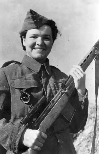 Pour sa première expérience du combat, elle participa à la bataille de Sokolovo, qui dura trois jours ( – ). Elle y tua sept soldats allemands ce qui lui donna immédiatement le statut d' « as ». Elle devint par la suite formatrice de tireurs d'élite dans l'infanterie tchécoslovaque et soviétique et fut également conductrice d'ambulance.