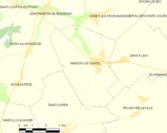 Le village de Marigny-le-Châtel est entouré de sept communes :