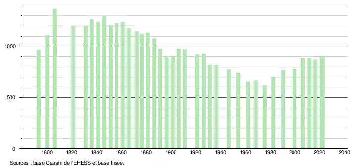 - ↑ Fiches Insee - Populations de référence de la commune pour les années 2006, 2007, 2008, 2009, 2010, 2011, 2012, 2013, 2014, 2015, 2016, 2017, 2018, 2019, 2020, 2021 et 2022.