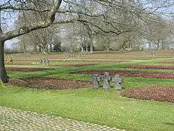 - Ancien cimetière américain de 3 070 tombes situé de 1944 à 1948 face au cimetière allemand de La Chapelle-en-Juger.