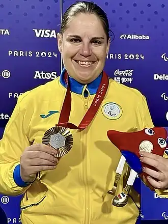 - ↑ « PParalympics 2012: Mariia Pomazan returns discus gold », The Telegraph, (lire en ligne)
