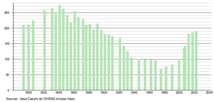 - ↑ Fiches Insee - Populations de référence de la commune pour les années 2006, 2007, 2008, 2009, 2010, 2011, 2012, 2013, 2014, 2015, 2016, 2017, 2018, 2019, 2020, 2021 et 2022.
