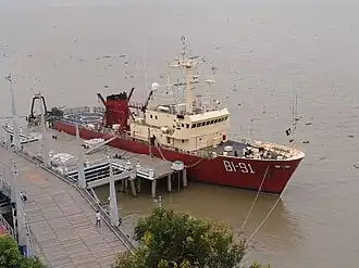 - ↑ (es) « El buque chino que pescaba tiburones en el 2017 hoy combate los ilícitos en el mar », sur El Comercio (consulté le ).