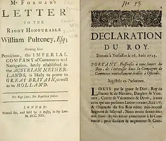 Les gains territoriaux obtenus par la monarchie de Habsbourg à l'issue de la guerre de Succession d'Espagne lui permirent de bénéficier d'installations portuaires idéales pour le commerce maritime telles que Anvers, Gand, Bruges ou encore Ostende. Alors que, depuis le début du XVIIe siècle, les puissances coloniales européennes tiraient de juteux profits de leurs comptoirs commerciaux localisés en Chine et en Inde, la politique autrichienne en la matière était bien plus attentiste[6]. Néanmoins, la situation évolua lorsqu'en décembre 1722, l'empereur Charles VI répondit aux doléances des principaux commerçants flamands et propriétaires de navires de la ville de Ostende (qui désiraient établir des lignes commerciales directes vers les Indes), et donna le droit à ce qui fut dès lors appelée la Compagnie d'Ostende de commercer avec les Indes orientales ainsi que le continent africain.[7] Pendant une dizaine d'années, cette compagnie commerciale engrangea des profits considérables, si bien qu'elle eut un impact sur la Compagnie britannique des Indes orientales. Cependant, cela n'était pas du goût de la Grande-Bretagne qui fit pression pour que cessent les activités de la Compagnie d'Ostende. Charles VI, qui désirait obtenir leur reconnaissance de la Pragmatique Sanction, n'eut guère le choix et mit fin aux activités de la Compagnie en 1731[7].