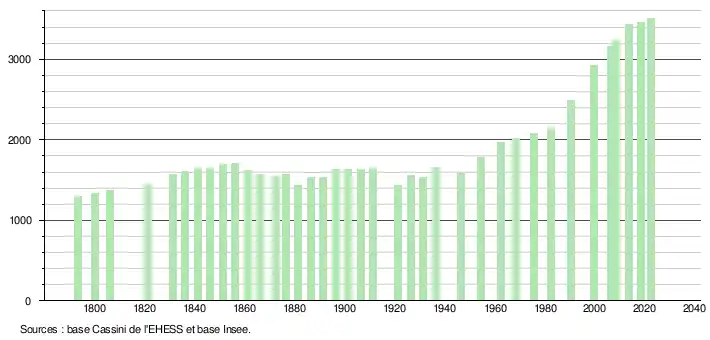 - ↑ Fiches Insee - Populations de référence de la commune pour les années 2006, 2007, 2008, 2009, 2010, 2011, 2012, 2013, 2014, 2015, 2016, 2017, 2018, 2019, 2020, 2021 et 2022.