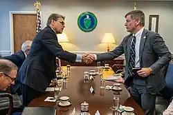 - ↑ (en) Mead Gruver, « Gordon Beats Throne to Keep GOP in Wyoming Governor's Office », sur usnews.com, (consulté le ).
