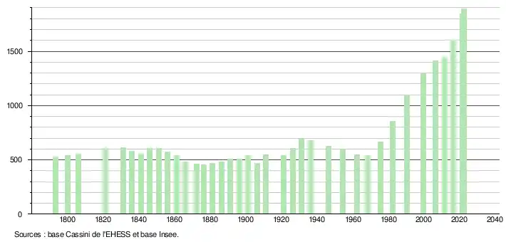 - ↑ Fiches Insee - Populations de référence de la commune pour les années 2006, 2007, 2008, 2009, 2010, 2011, 2012, 2013, 2014, 2015, 2016, 2017, 2018, 2019, 2020, 2021 et 2022.