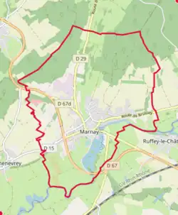 - ↑ « Orthodromie entre Marnay et Cugney », sur fr.distance.to (consulté le ).