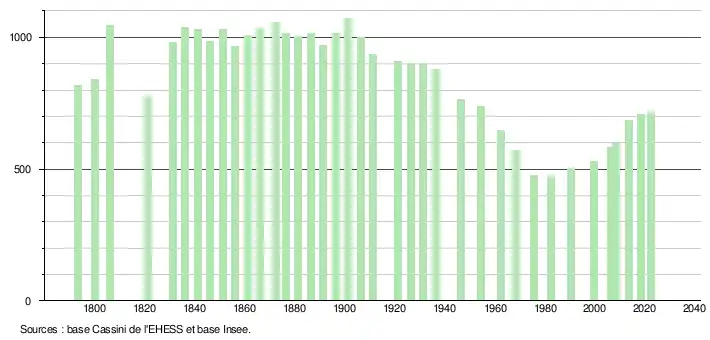 - ↑ Fiches Insee - Populations de référence de la commune pour les années 2006, 2007, 2008, 2009, 2010, 2011, 2012, 2013, 2014, 2015, 2016, 2017, 2018, 2019, 2020, 2021 et 2022.