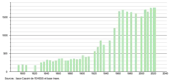 - ↑ Fiches Insee - Populations de référence de la commune pour les années 2006, 2007, 2008, 2009, 2010, 2011, 2012, 2013, 2014, 2015, 2016, 2017, 2018, 2019, 2020, 2021 et 2022.