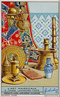 - ↑ Private collection Paul MR Maeyaert ; Ref: PM_110375_Liebig_Chromos; www.pmrmaeyaert.eu; www.polmayer.com; Africa; Africa|Morocco; Cultural heritage; Cultural heritage|Techniques|Postcard trade card. Text on reverse.