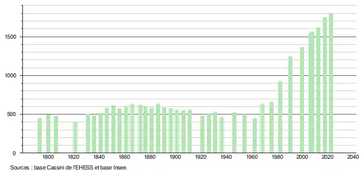 - ↑ Fiches Insee - Populations de référence de la commune pour les années 2006, 2007, 2008, 2009, 2010, 2011, 2012, 2013, 2014, 2015, 2016, 2017, 2018, 2019, 2020, 2021 et 2022.