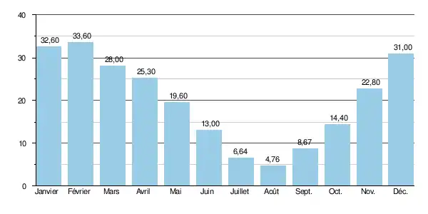 À l'étiage le VCN3 peut chuter jusque 0,28 m3/s, en cas de période quinquennale sèche, soit 280 litres par seconde, ce qui représente 1,4 % du module.