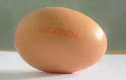 En Europe, pour les élevages dépassant le seuil de 250 poules, des mentions obligatoires sont marquées sur l'œuf[1]: un code est obligatoirement inscrit sur la coquille des œufs[2]. Il permet d'assurer une traçabilité conformément à la directive européenne 2002/4/CE.