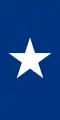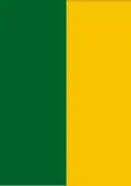 dérive : reprise du drapeau national : en trois bandes verticales: gauche en rouge, droite en vert, centre plus large en, blanc avec un blason en écu divisé en deux parties horizontales : partie haute en blanc sur la gauche un écu vert bordé or avec une fleur de lys en or, sur la droite un écu rempli en damier blanc/rouge, partie basse en bleu avec 10 étoiles blanches à 6 branches en cercle.