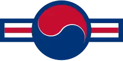 Fuselage : - A : cocarde bordurée de bleu à l'intérieur le sigle Yin et yang l'un sur l'autre (sans points), celui du dessus en rouge et le dessous en bleu, séparation en blanc, le tout sur une bande blanche bordurée bleu avec à son centre un liseré rouge. - B : basse visibilité : le bleu est remplacé par du gris foncé, le rouge par du gris clair et le blanc est évidé. | |