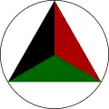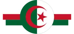 Cocarde: Cercle borduré de blanc, divisé en 3 parties horizontales: haut en bleu, centre en rouge, bas en vert, au centre un croissant de lune blanc et une étoile à 8 branches entre les pointes. Image 2 :