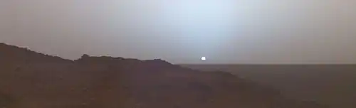 Mars (prononcé en français : /maʁs/) est la quatrième planète du Système solaire par ordre croissant de la distance au Soleil et la deuxième par ordre croissant de la taille et de la masse. Son éloignement au Soleil est compris entre 1,381 et 1,666 au (206,6 à 249,2 millions de kilomètres), elle a une période orbitale de 669,58 jours martiens (686,71 jours ou 1,88 année terrestre).