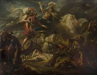 Le sujet, tiré du chant V de l'Iliade, montre le combat entre Mars et Minerve durant la guerre de Troie.