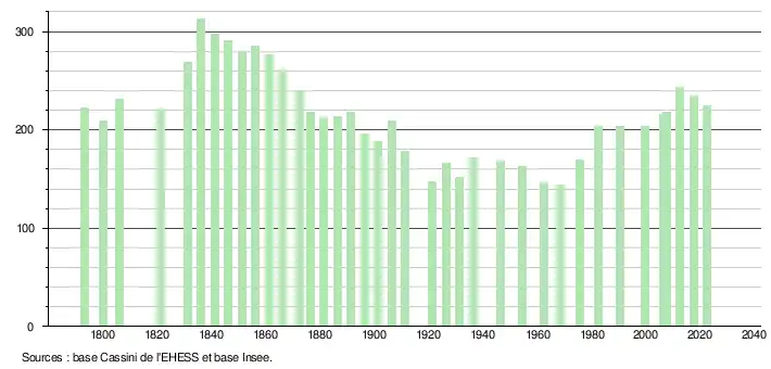 - ↑ Fiches Insee - Populations de référence de la commune pour les années 2006, 2007, 2008, 2009, 2010, 2011, 2012, 2013, 2014, 2015, 2016, 2017, 2018, 2019, 2020, 2021 et 2022.