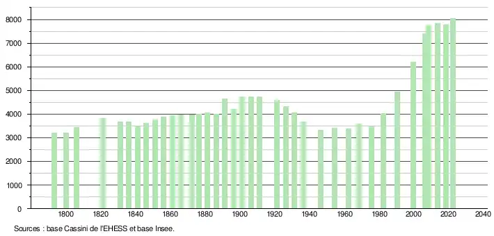 - ↑ Fiches Insee - Populations de référence de la commune pour les années 2006, 2007, 2008, 2009, 2010, 2011, 2012, 2013, 2014, 2015, 2016, 2017, 2018, 2019, 2020, 2021 et 2022.