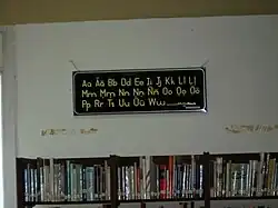 | Minuscules | a | ā | b | d | e | i | j | k | l | ļ / ḷ | m | m̧ / ṃ | n | ņ / ṇ | n̄ | o | o̧ / ọ | ō | p | r | t | u | ū | w |