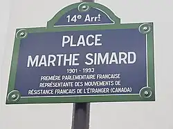 En attendant la Libération et la mise en forme juridique de cet engagement, la France libre se dote d'une représentation nationale provisoire. L'ordonnance du , à Alger, donne naissance à l'Assemblée consultative provisoire. Ses membres[4] ne sont pas tous élus mais choisis. Parmi eux, pour la première fois, siège une femme : Marthe Simard, nommée le , après avoir été désignée par les représentants des mouvements de la Résistance extérieure pour y représenter le Canada.