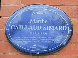 - ↑ Ville de Québec, « Plaque Ici véçut : Marthe Caillaud-Simard », sur ville.quebec.qc.ca (consulté le )