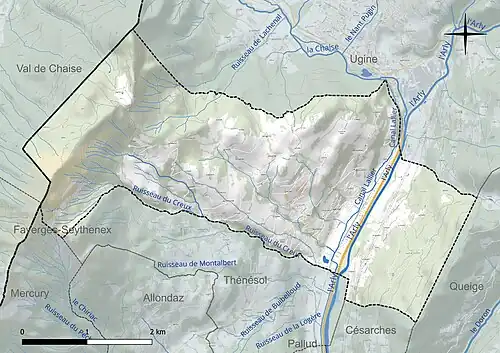 Les communes limitrophes sont Césarches, Mercury, Queige, Thénésol, Ugine et Val de Chaise.