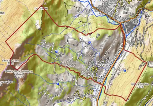 - ↑ « Orthodromie entre Marthod et Ugine », sur fr.distance.to (consulté le ).
