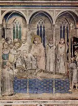 Au soir de sa vie, sa présence est requise pour réconcilier des clercs à Candes-sur-Loire, à l'ouest de Tours ; l'urgence de l'unité de l'Église fait que malgré sa vieillesse, il décide de s'y rendre[Note 32],[23]. Son intervention est couronnée de succès, mais, le lendemain, épuisé par cette vie de soldat du Christ, Martin meurt à Candes, à la fin de l’automne, le sur un lit de cendres comme mouraient les saints hommes. Au moment de sa mort, les personnes qui l'entourent rapportent avoir vu son corps paraître blanc comme neige[24].