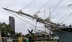 (Marine) La martingale est un gros cordage en double, une chaîne ou un câble, qui relie l'extrémité du beaupré à la base de celui-ci (au fronteau du gaillard d'avant) en passant par le clan inférieur de l'arc-boutant de martingale (ou arc-boutant de beaupré) - espar en bois ou métal gréé verticalement sous le beaupré - et qui vient ainsi raidir la martingale.