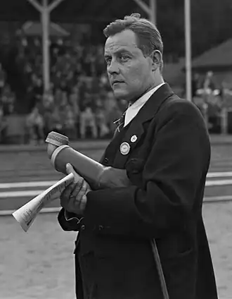 - ↑ (fi) Jukka Lindfors, « Martti Jukola, urheiluselostuksen uranuurtaja », sur yle.fi, .