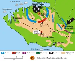 Mary allait souvent faire la cantinière[61], vendant ses provisions auprès du camp britannique à Kadikoi, et à l’occasion allant jusqu’aux tranchées autour de Sébastopol ou de la vallée de la Tchernaïa. L’armée britannique la connaissait sous le nom de « Mère Seacole »[2].