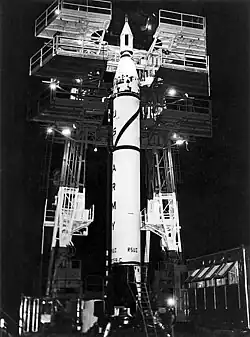 En 1957, l'Union soviétique et les États-Unis s'étaient fixé pour objectif de placer des satellites en orbite terrestre dans le cadre d'une célébration scientifique mondiale connue sous le nom d'Année géophysique internationale[16]. Dans cette entreprise, l'effort des États-Unis s'appelle le programme Vanguard. L'Union soviétique lance avec succès le satellite Spoutnik 1 le , un événement suivi peu après par une explosion très publique et désastreuse d'une fusée Vanguard. La pression politique obligea les personnalités politiques américaines à autoriser un ancien spécialiste allemand des fusées, Wernher von Braun, à préparer sa fusée Jupiter-C pour un vol orbital. Dans le lanceur renommé (maintenant appelé Juno I), le propulseur a réussi à lancer le premier satellite américain, Explorer 1, en orbite le [10].