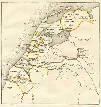 - ↑ (nl) in Geschiedenis des vaderlands (Histoire des terres d'origines) de W. Bilderdijk tome 1 (1832) pag. 208