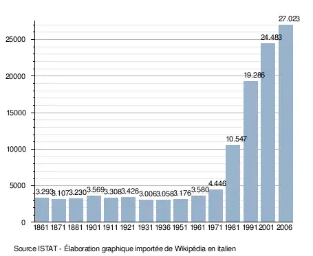 - ↑ (it) Popolazione residente e bilancio demografico sur le site de l'ISTAT.