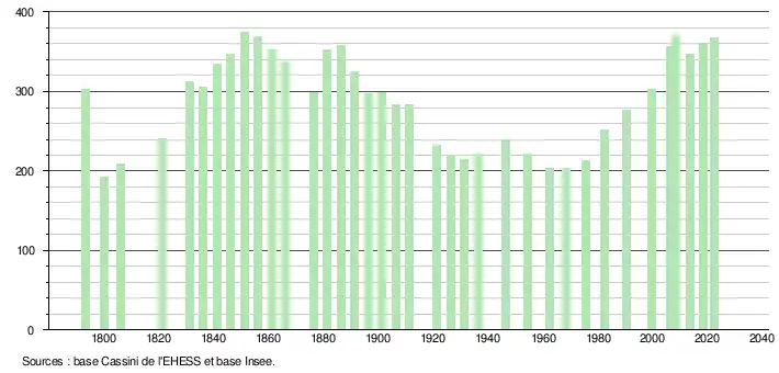 - ↑ Fiches Insee - Populations de référence de la commune pour les années 2006, 2007, 2008, 2009, 2010, 2011, 2012, 2013, 2014, 2015, 2016, 2017, 2018, 2019, 2020, 2021 et 2022.
