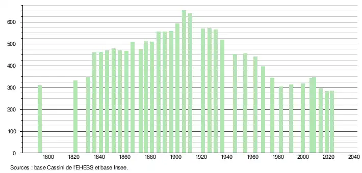 ↑ Population municipale de référence en vigueur au 1erjanvier2025, millésimée 2022, définie dans les limites territoriales en vigueur au 1erjanvier2024, date de référence statistique: 1erjanvier2022.