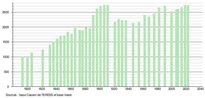 - ↑ Population municipale de référence en vigueur au 1er janvier 2025, millésimée 2022, définie dans les limites territoriales en vigueur au 1er janvier 2024, date de référence statistique : 1er janvier 2022.